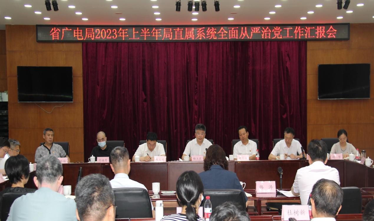 6月25日,老澳门六合彩资料 召开2023年上半年局直属系统全面从严治党工作汇报会。省技保中心、监测中心、北联集团、局机关第三党支部(电视剧处)负责同志作为基层党组织代表分别汇报了2023年上半年全面从严治党工作情况及下一步工作打算。老澳门六合彩资料 党组书记、局长梅玉良主持会议并讲话。驻部纪检组赵雪同志出席会议。